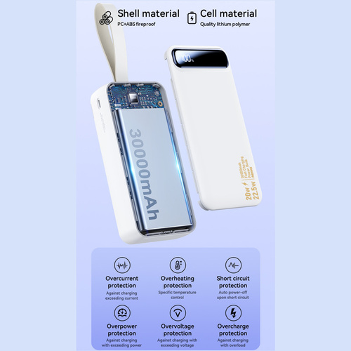پاوربانک ریمکس مدلRPP-660 یک محصول جذاب ، حرفه ای و منحصر به فرد است که از آخرین فناوری های روز دنیا بهره می برد. این پاوربانک توانایی شارژ دستگاه شما را تا 22.5 وات دارد و از فناوری فست شارژ نیز پشتیبانی میکند . یک ویژگی مهم و جذاب این پاوربانک چراغ LED هست که در پشت این دستگاه تعبیه شده است. این چراغ قدرتمند دارای نور درخشان و با قدرت بالایی است که در مکان های تاریک به شدت کمک حال شما خواهد بود. ویژگی بعدی این پاوربانک استفاده از بند محکم در قسمت بالایی دستگاه است که به راحتی و بدون نگرانی از پارگی میتوانید پاوربانک را جابه جا کنید. این پاوربانک دارای دو پورت خروجی USB-A با توان 22.5 وات و یک پورت Type-C با ماکزیمم توان 20 وات است و از فناوریهای شارژ سریع PD و QC نیز پشتیبانی میکنند. و همچنین قابلیت شارژ همزمان سه دستگاه را نیز داراست. ورودی های این پاوربانک از دو نوع Type-C و Micro با قابلیت شارژ سریع 18 وات می باشد که این ویژگی مهم در شارژ کردن پاوربانک بسیار موثر است. میزان شارژ این دستگاه از طریق نشانگر دیجیتالی است که روی آن تعبیه شده است و میتوانید در هر لحظه میزان شارژ دستگاه را مشاهده نمایید.